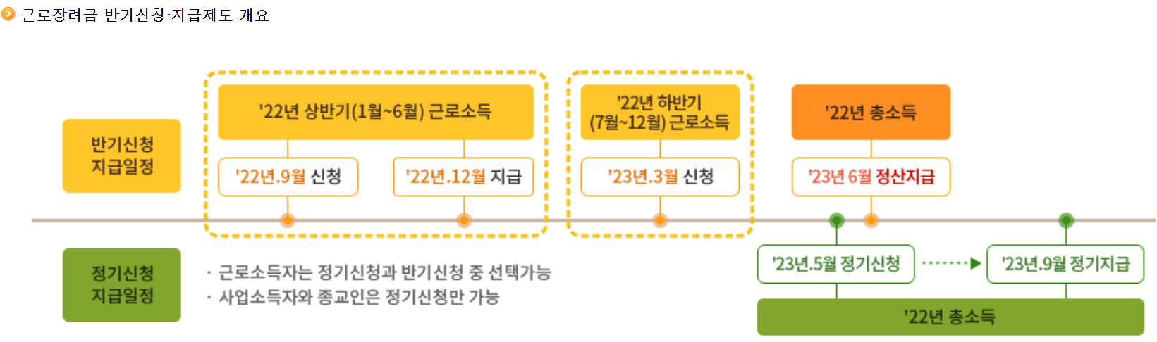 ☞ 근로장려금 정기 및 마감 후 신청 기간 및 지급 일정은 아래 표와 같습니다.(산정금액 계산은 홈택스 로그인 후 가능)