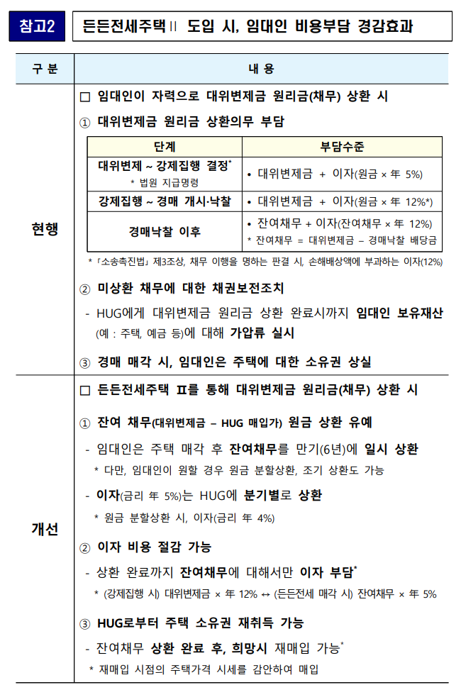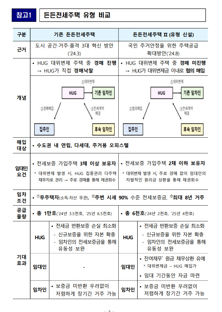 이에 정부는 국민 주거 안정을 위해 주택공급방안으로 든든전세주택이라는 제도를 내놓았고 HUG, LH에서 주체가