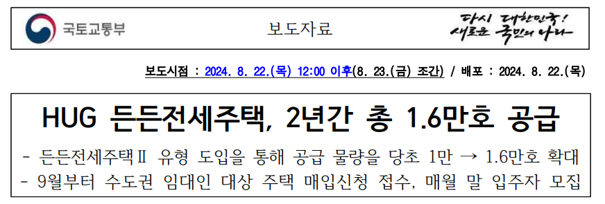 안녕하세요 오늘은 지난 2024년 9월 13일에 마감됐던 HUG 든든전세주택에 대해서 알아볼게요