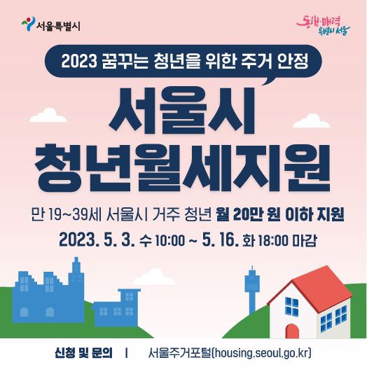 ☞ 서울에 거주하는 청년의 주거비 부담완화와 안정적 주거환경 마련을 위한 서울시의 청년주거복지사업입니다.