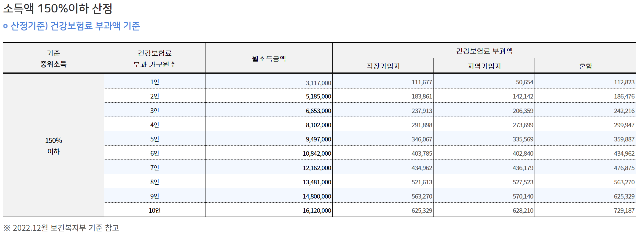 신청인이 속한 가구의 건강보험료 부과액(최근 3개월('23년 2월~4월) 평균액)이 '23년 기준중위소득 150%의 건강보험료 부과액을