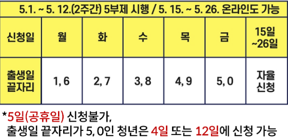 ☞ 5.15 ~ 5.26 복지로(www.bokjiro.go.kr)에서 온라인 신청 가능
