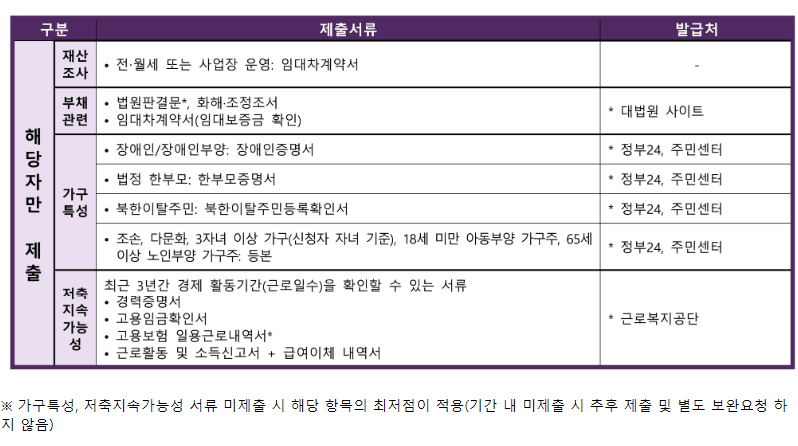 제출서류가 미비한 경우 지원대상에서 제외될 수 있으므로 해당하는 서류를 확인하여 반드시 기한 내 제출해야 됩니다.